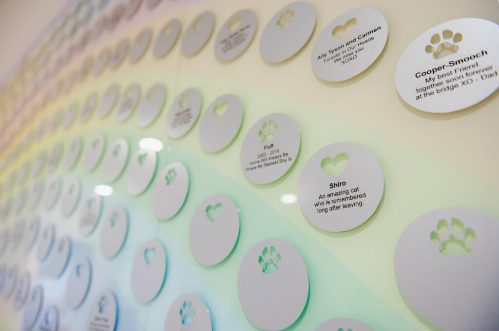 On our Rainbow Bridge wall, you can customize a commemorative badge to remember your beloved pet.