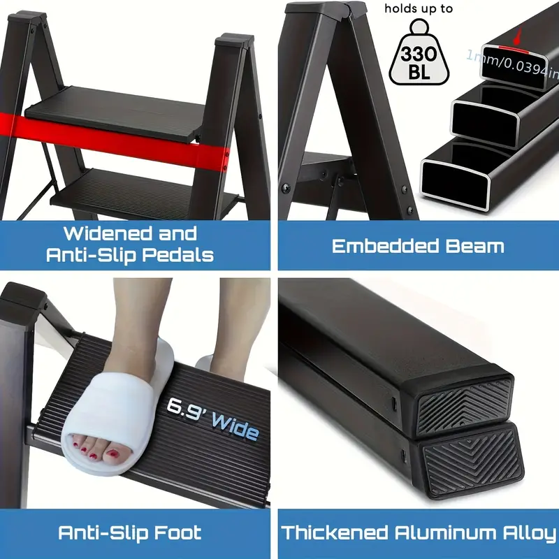 2376 reviews for 3-х ступенчатая лестница, складная ступенька с широкой антискользящей педалью, грузоподъемность 330 фунтов, легкая и портативная для экономии места на кухне.
