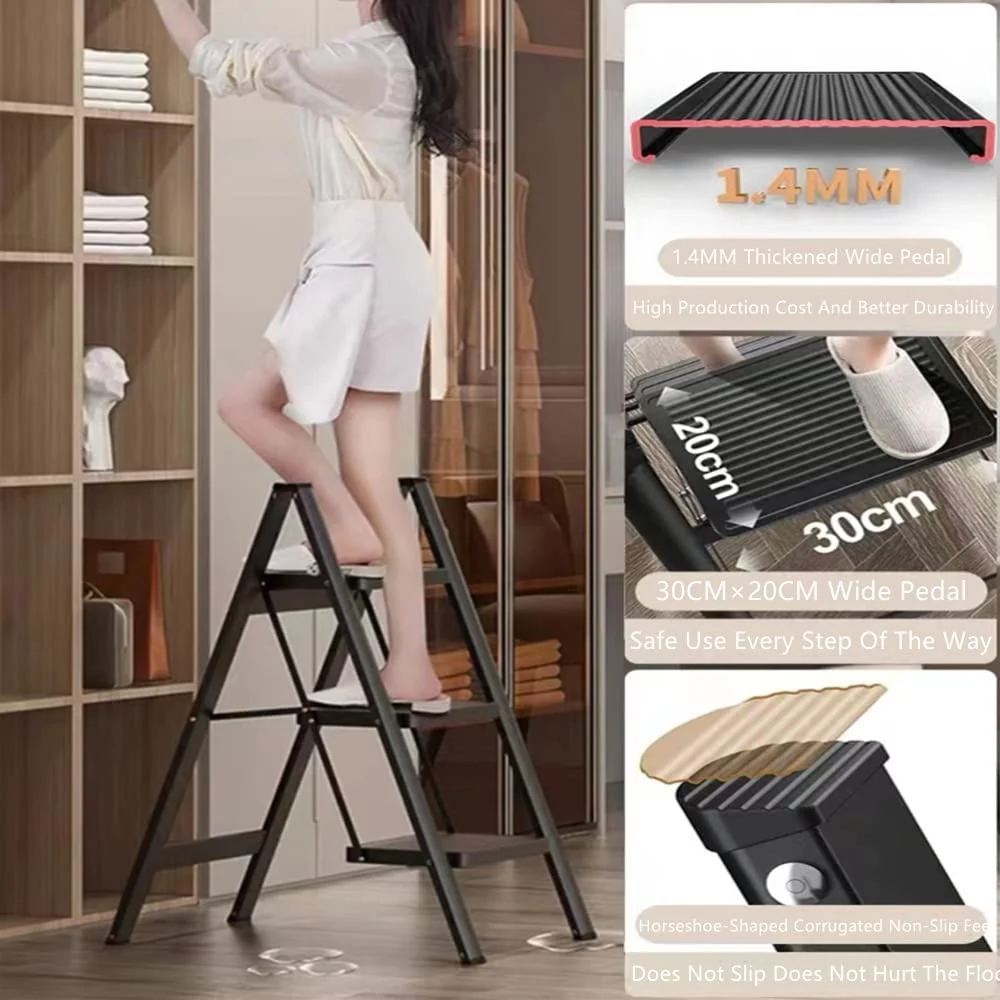 [Безопасно и стабильно] Стремянка изготовлена из высококачественной железной конструкции, прочная и долговечная, легкая, удобна для выполнения нескольких работ, имеет нескользящую конструкцию ножек для повышения устойчивости и безопасности, защиты пола