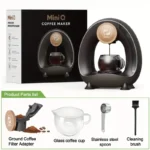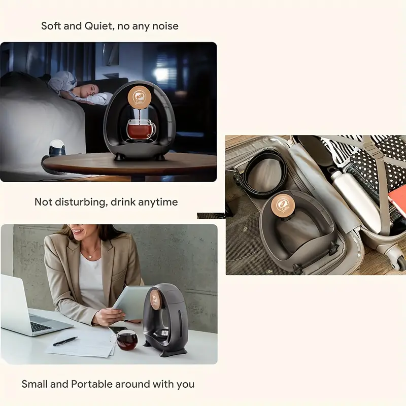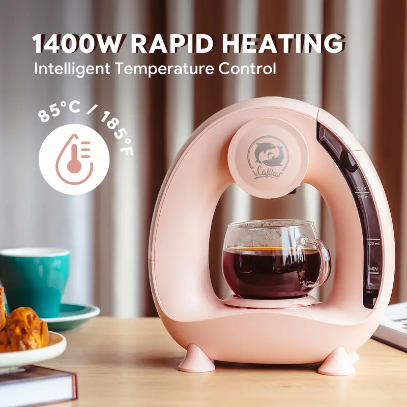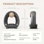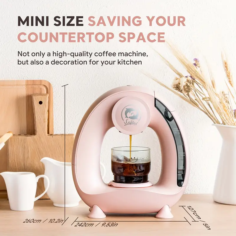 Characteristics: 1. Compact size (Mini personal coffee Maker) 2. Smart temperature regulation 3. Detachable tank (Facilitates cleaning and refilling) 4. Quick & Flavorful Brewing (tasty coffee ready in minutes)