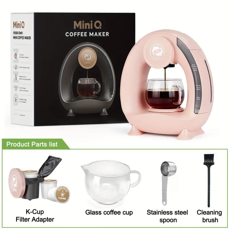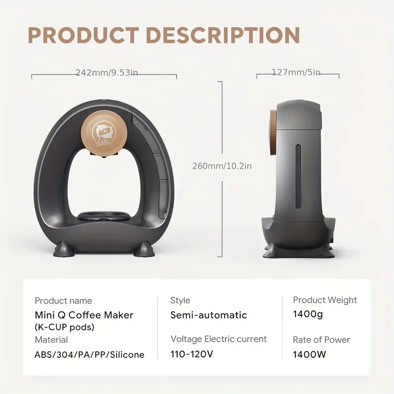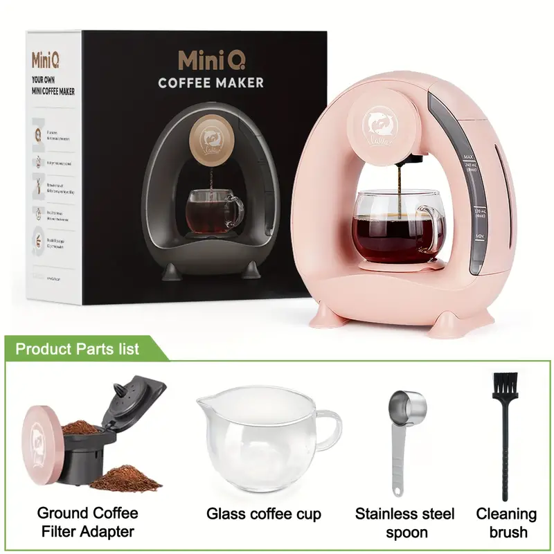 Specifications: Product name: Mini Q Coffee Maker Style: Semi-automatic Weight: 1400g Voltage: 110V-220V Material: ABS/304/PA/Silicone Power: 1400W Package Includes: 1 Mini Q Coffee Maker, 1 Cleaning Brush, 1 Manual