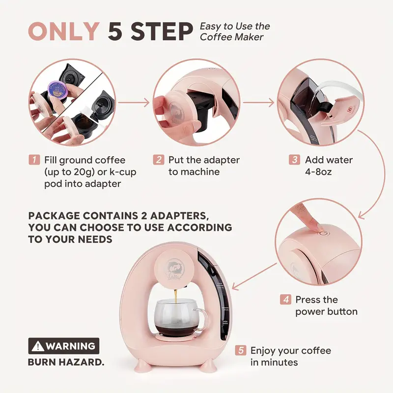 2 in 1 coffee maker for kcup ground coffee americano mini coffee machine tea maker with coffee filter kcup adapter 4 8 cup brewing sizes details 04 8 oz coffee maker 185 degree temperature compact coffee machine for travel automatic maker with cup details 1