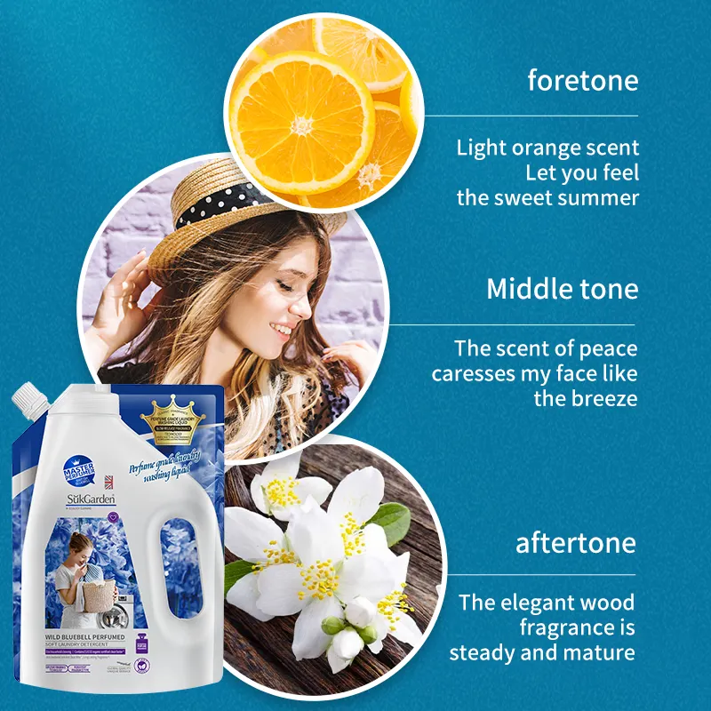 Bule Wind Bell Perfume 500g Lasting Fragrance Friendly skin Antibacterial And anti-mite Liquid Laundry Detergent