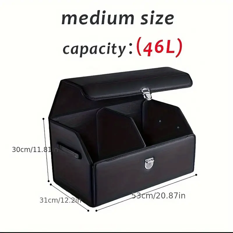 Car Trunk Storage Box PU Leather Material – Suitable for Car, Home, Travel, Camping and Picnic, Foldable and Adjustable Multifunctional Storage, Car Interior Supplies