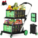 411 reviews for 2-Tier Folding Shopping Cart Portable Utility Cart with 1 Storage Box, Rubber Wheels, 198 lbs Weight Capacity, with 360° Swivel Wheels