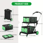 2-Tier Folding Shopping Cart Portable Utility Cart with 1 Storage Box, Rubber Wheels, 198 lbs Weight Capacity, with 360° Swivel Wheels