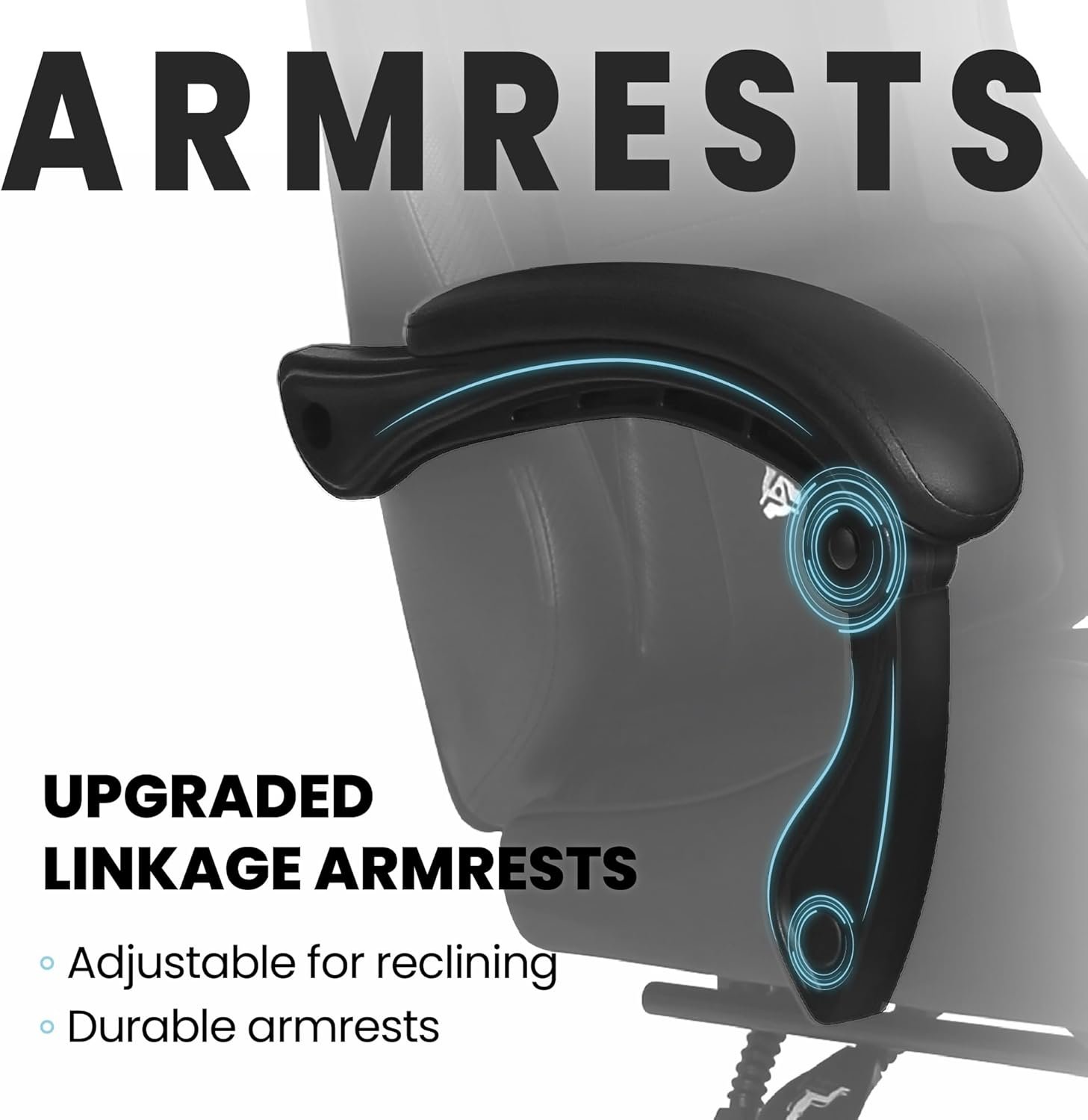 - Adjustable Comfort – Recline with linkage armrests. fine-tune height using an SGS-certified gas lift that supports up to 300 lbs. and rotate easily with 360° swivel and smooth-rolling wheels.