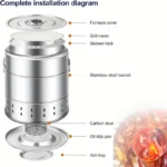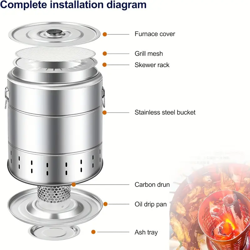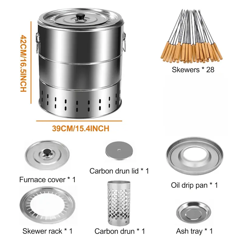 796 reviews for Portable Smokeless Charcoal Barrel Grill, Smoked Grill, Smokeless Fire Pot, Outdoor Stainless Steel Surrounding Grill Skewer Grill, with 28/20 Skewer Racks, Cooking Grid and Drip Tray, Grill Tool Set, Diameter 15.4/13.4 Inches, Christmas Gift, Ideal for Parties, Picnics and Camping
