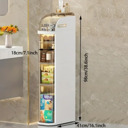 1 Piece 4 Tier Bathroom Organization and Storage, Plastic Narrow and Slim Storage Cabinet with Clear Drawers, Bathroom Floor Cabinet, Towel Organizer, Rolling Cart with Wheels for Small Space Gap Living Room