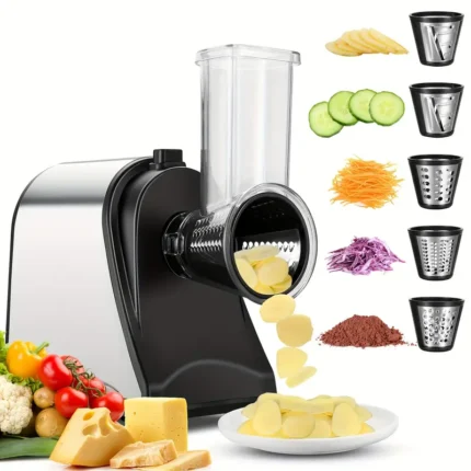 Original price was: $50.00.$2.99Current price is: $2.99.5-in-1 electric vegetable slicer, electric cheese grinder, 250W professional electric vegetable cutter, with 5 conical blades, stainless steel vegetable slicer, multifunctional vegetable shredder.
