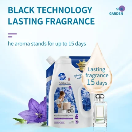 Original price was: $500.00.$4.99Current price is: $4.99.Bule Wind Bell Perfume 500g Lasting Fragrance Friendly skin Antibacterial And anti-mite Liquid Laundry Detergent